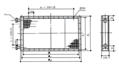 凈通風(fēng)截面積m2 | 表面管數(shù) | 排數(shù) | 連接管DN(in) | 尺寸(mm) | ||||||||||